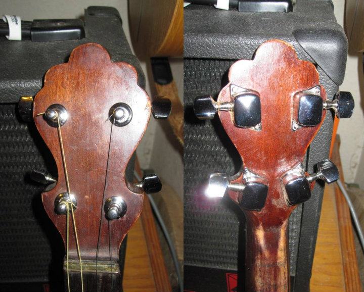Die ist super. War das nicht so, dass Tenorgitarren ursprünglich \"erfunden\" wurden, um Banjospielern den Übergang zur Gitarre zu erleichtern? Die Kopfplattenform und der bewegliche Steg sehen (für mich) noch Banjo-typisch aus. Vielleicht war das auch die Idee bei den Mechaniken.